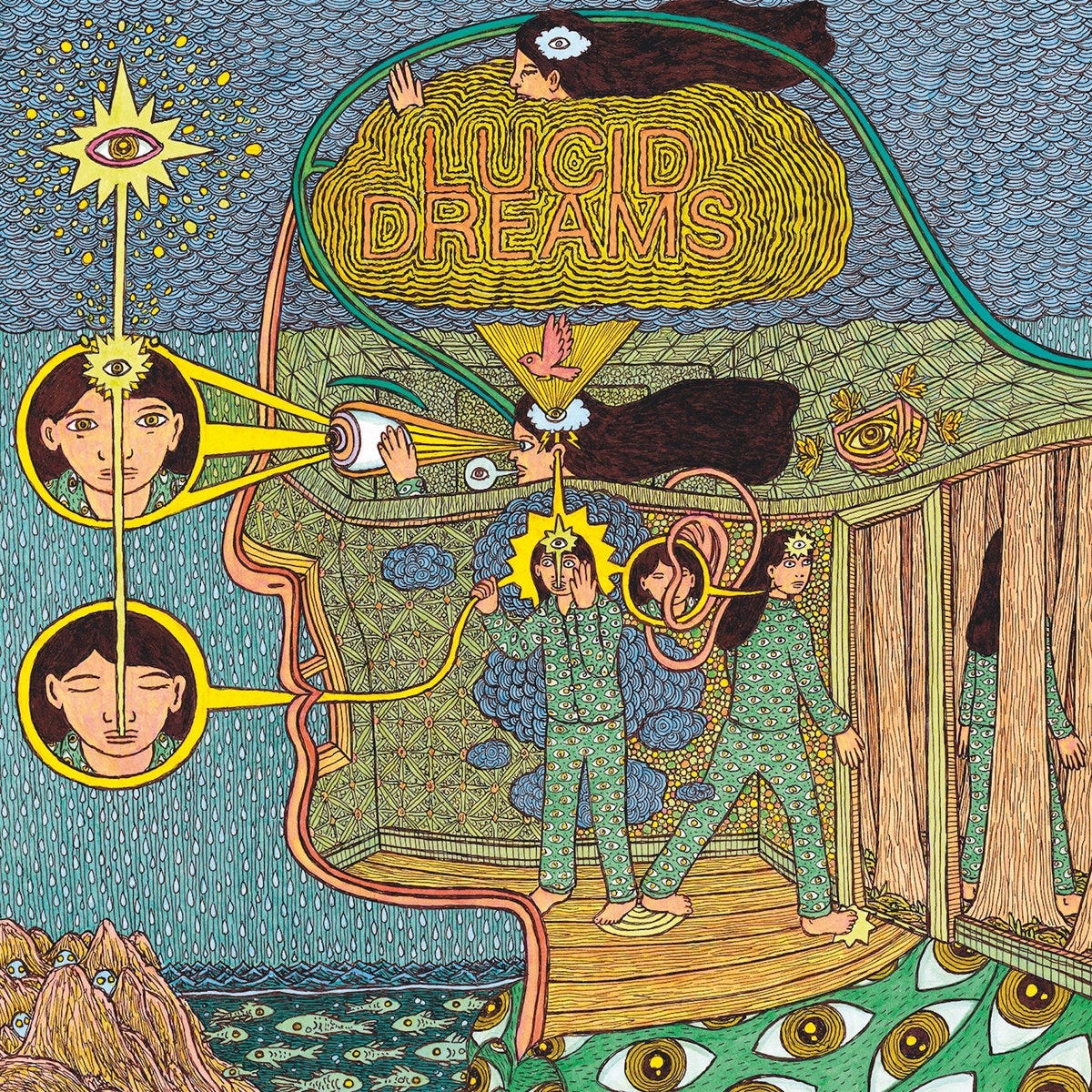 Back to the topic at hand, let’s talk about a pairing that feels perfectly made for each other in some fourth world psychedelic dimension. Astral Industries, a fantastic record label from the UK, has been collaborating with illustrator Theo Ellsworth since their debut release. If you’re not familiar with either, you’re about to have your mind blown. Totally out of the box, and if you look closely, you might find little details that reflect a world mirroring both our inner and outer lives.